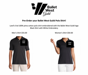 Back by popular demand! Ballet West Guild embroidered logo polo shirts.