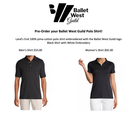 Back by popular demand! Ballet West Guild embroidered logo polo shirts. Click HERE to order!